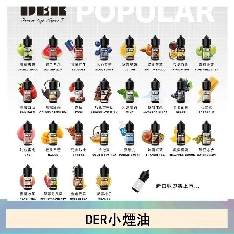 【小煙油】DER 系列 30ml #3.0% 現貨口味: 梅子綠茶 水蜜桃 橙子檸檬 芒果 藍莓 西瓜 冷泡茶 寶礦力 沙士 薄荷 檸檬 冰泉 蜜桃冰茶 草莓奇異果 草莓西瓜 紅茶 烏龍綠茶 巧克力牛奶 老冰棍 蔓越莓鳳梨百香果 綠豆紅